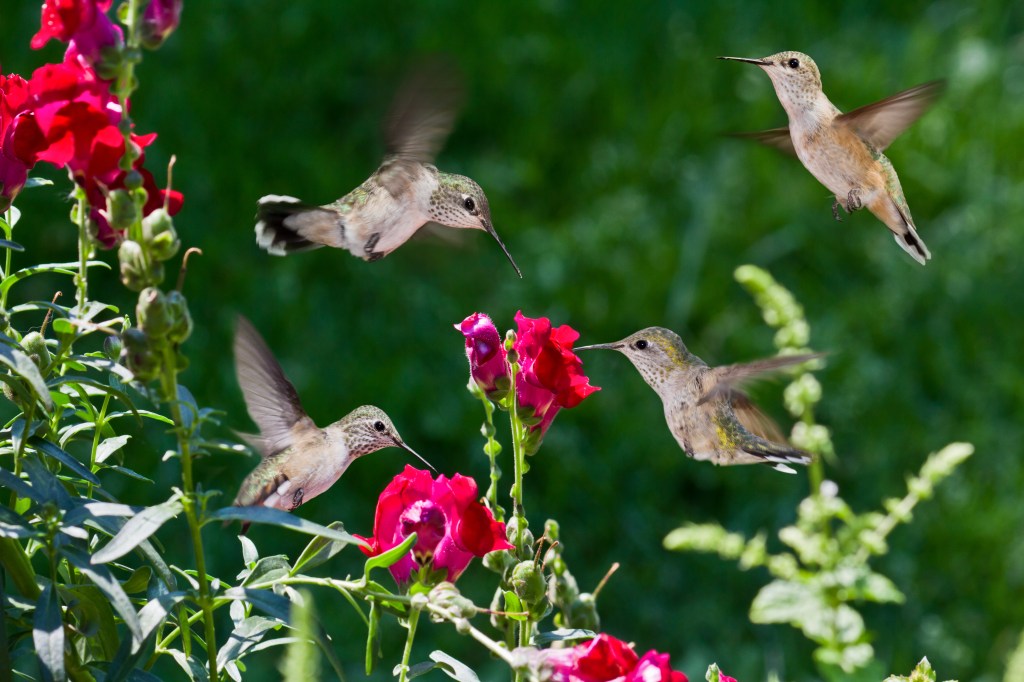 My hubby reaches the window in time to see the last of the birds briefly hover before speeding away. He confirms that they are indeed hummingbirds. We began to talk about how we had never seen more than a pair of hummers in the yards at a time.